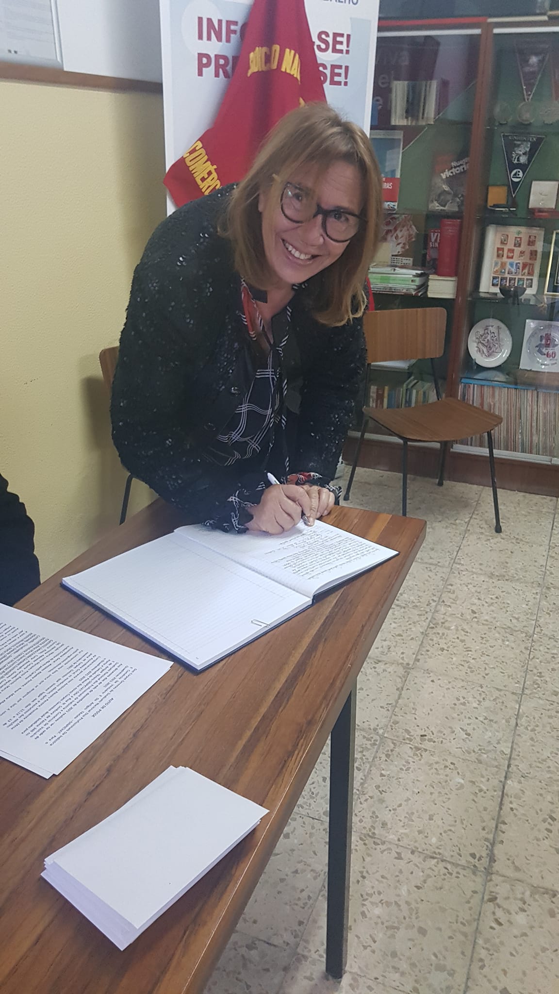 Luisa Marques, Presidente do Sindicato do Vestuário e Confecção - SINPICVAT, e, membro do Conselho Nacional e da Comissão Executiva da CGTP-IN intervindo em Lever Gaia, junto ao Centro de Saúde local em nome da CGTP-IN pela defesa de um Serviço Nacional de Saúde, que corresponda as exigências reais e necessárias da população Portuguesa.
