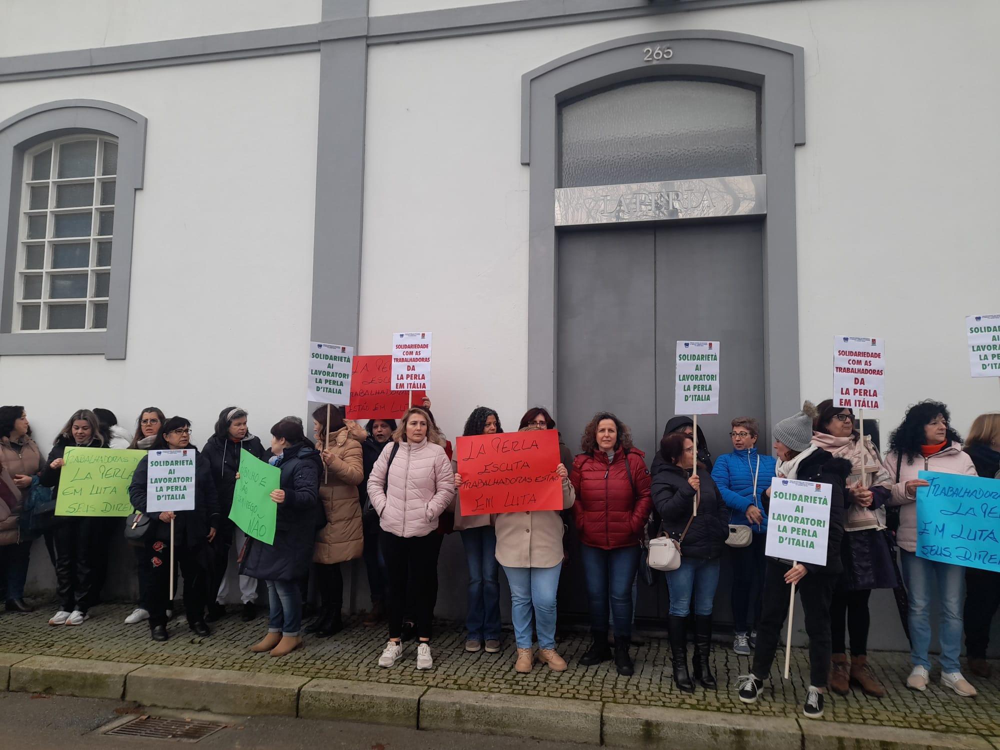 Luisa Pinto Presidente do Sindicato do Vestuário, intrevindo na concentração das trabalhadoras da Lá Perla, Vila Nova de Gaia, 9 de Janeiro 202, a Luta Continua