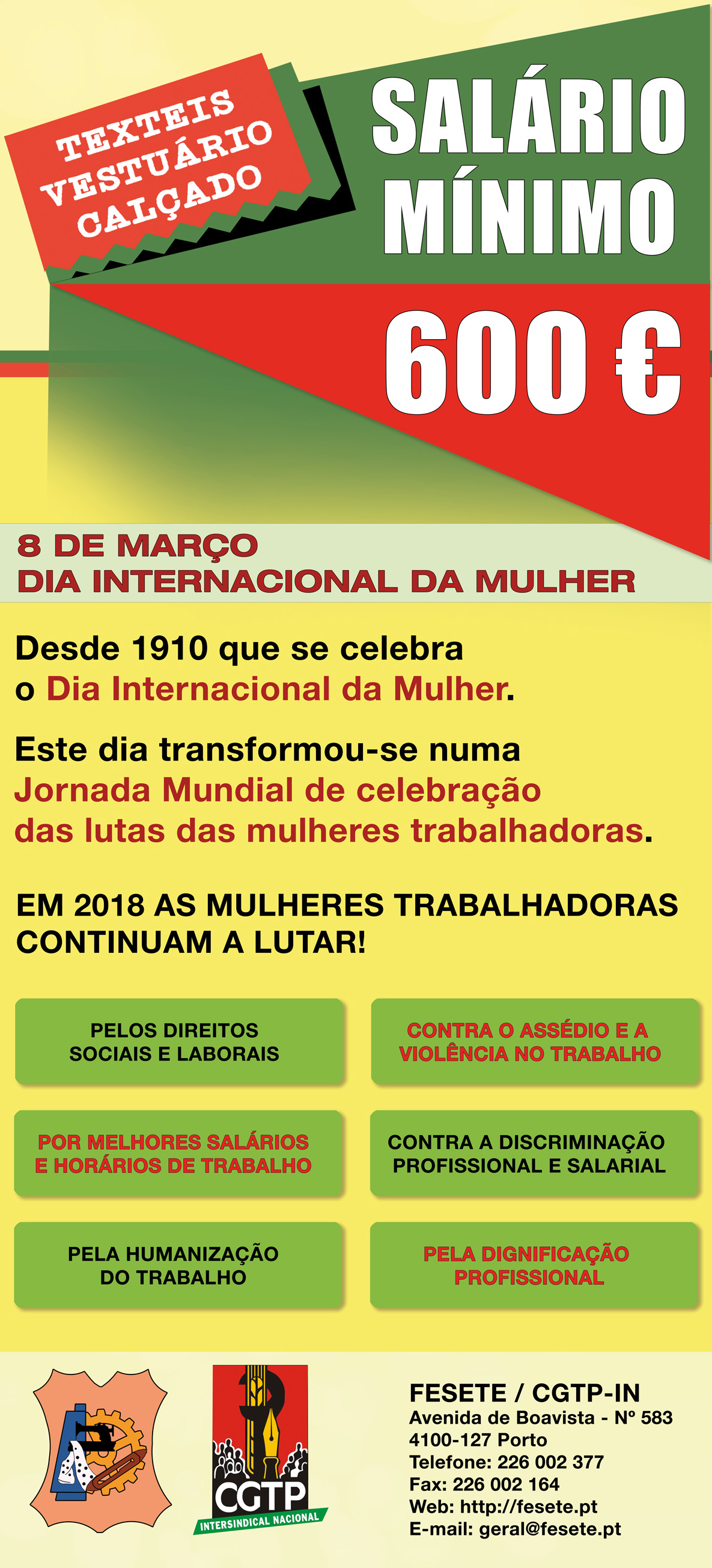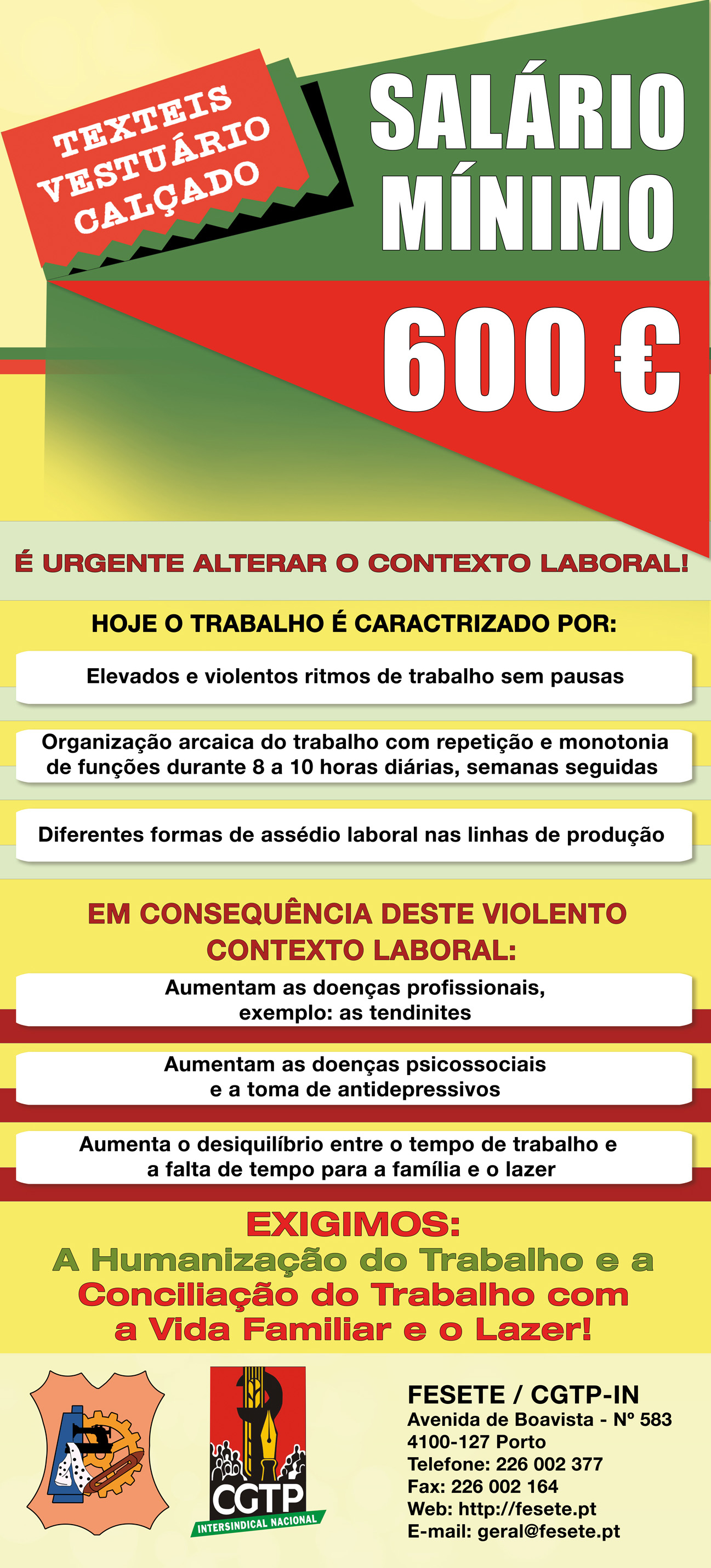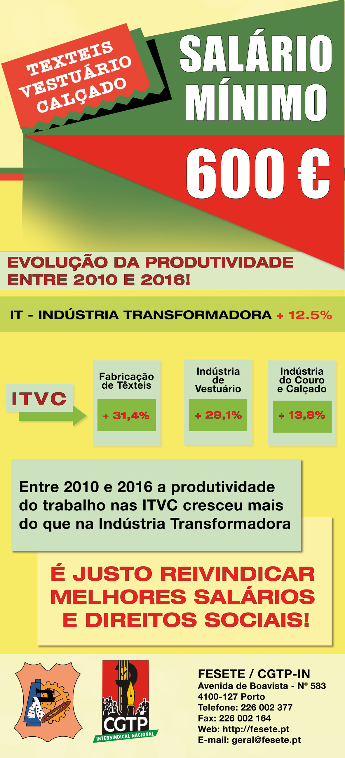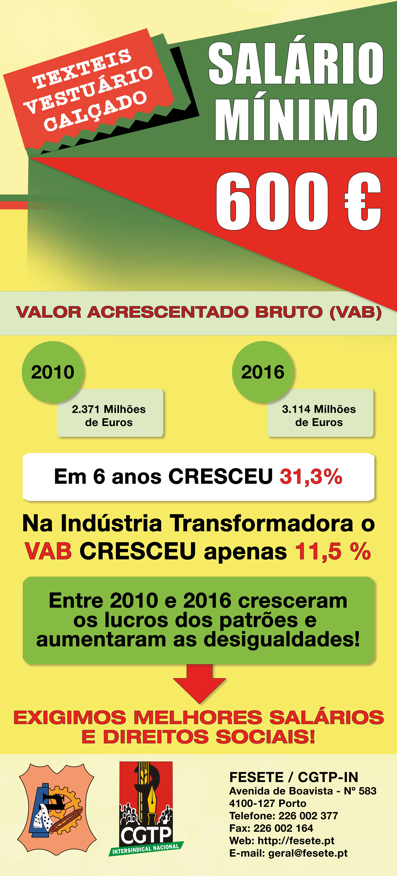 PELO SALÁRIO MÍNIMO DE 600 EUROS PARA OS/AS TRABALHADORES/AS TÊXTEIS, VESTUÁRIO E CALÇADO !