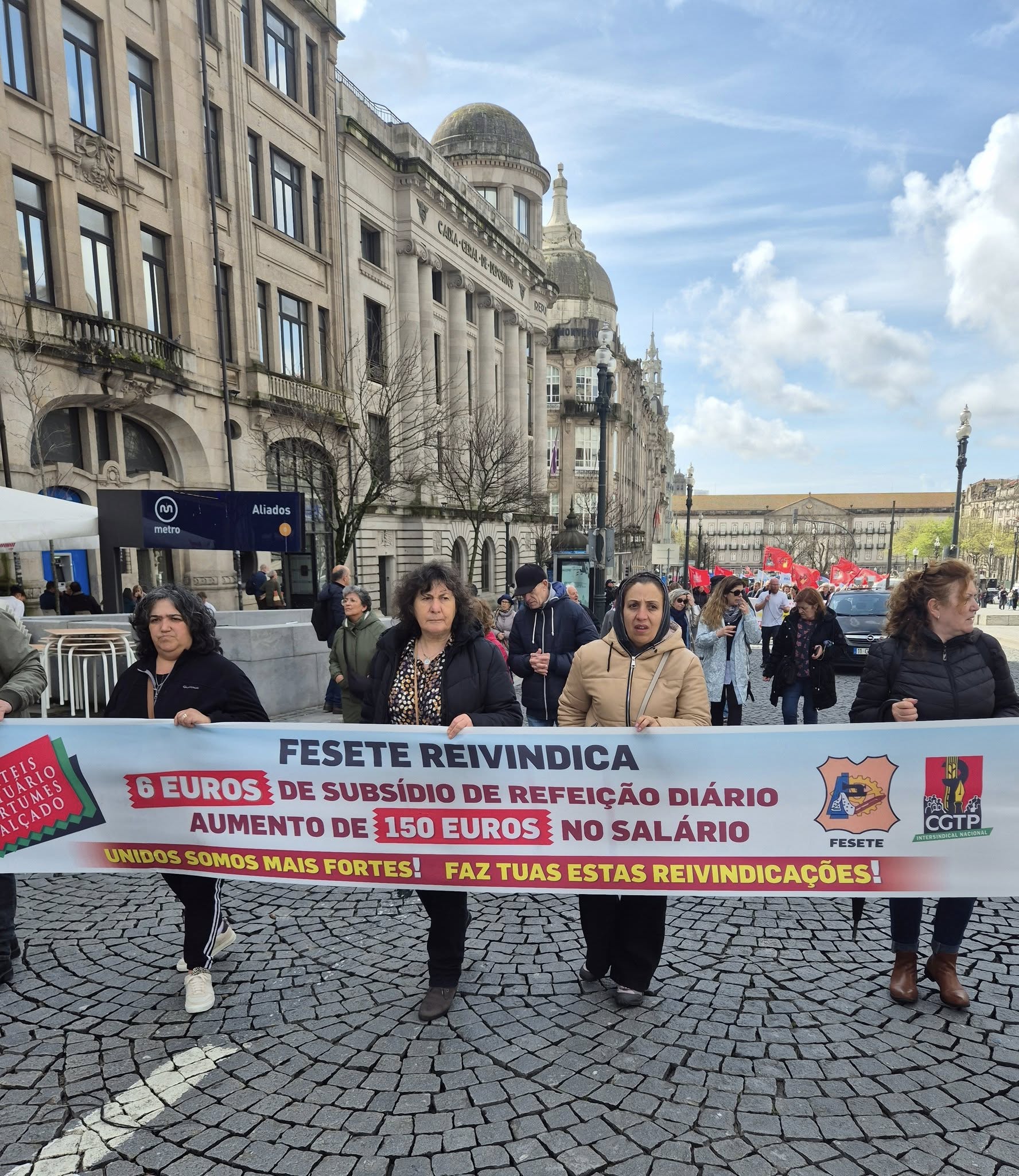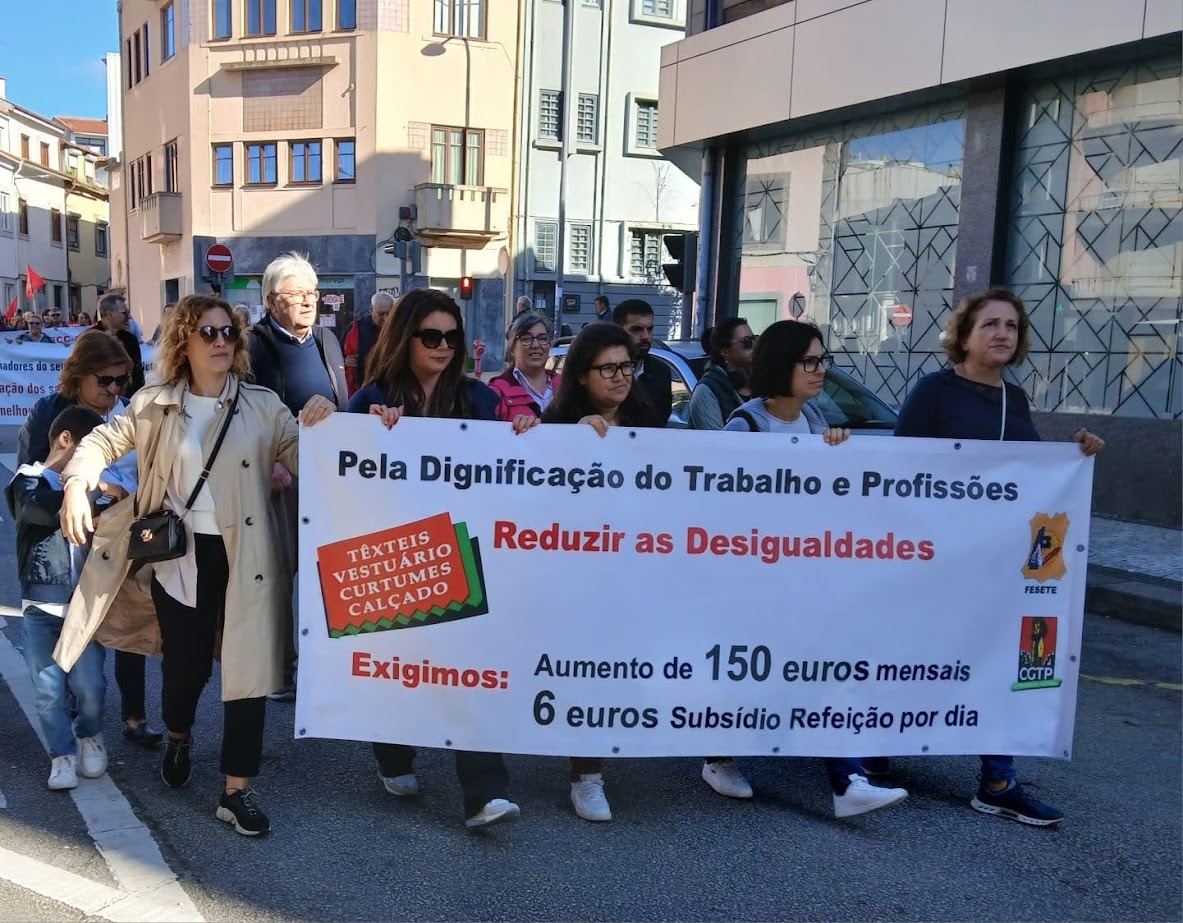 Esta concentração conta com a presença de delegações dos sindicatos filiados na FESETE, a coordenadora da Direcão Nacional, Isabel Tavares, em solidariedade com os trabalhadores da empresa Paulo de Oliveira, que lutam por melhores salários, pelos Direitos, por um subsídio de refeição de 6 euros, por uma vida digna. Ler mais CLIQUE AQUI