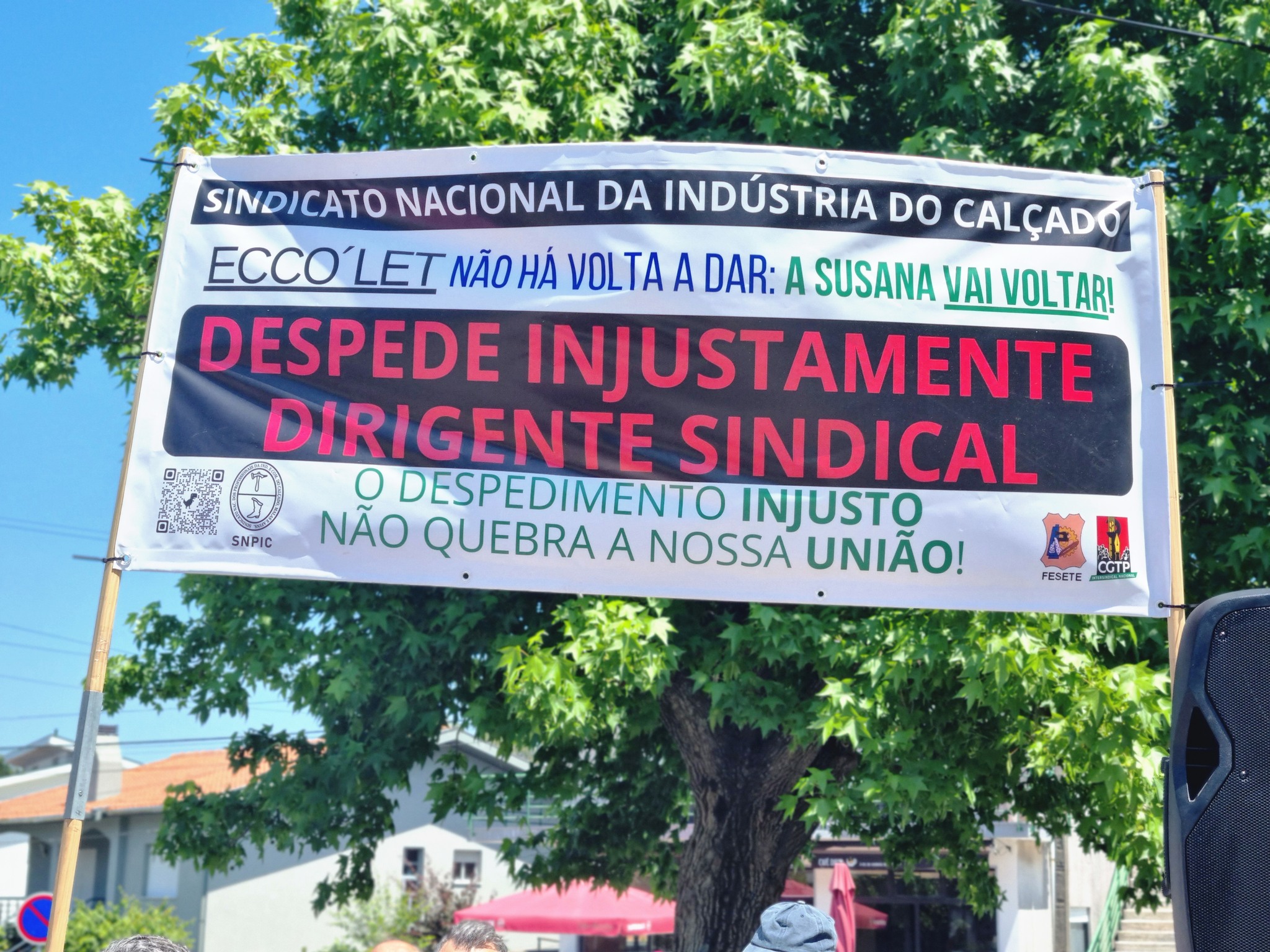 A FESETE e os seus sindicatos filiados participaram na Concentração de Protesto e Solidariedade, no dia 19 de maio, pelas 13,30 horas, frente à empresa ECCO, empresa multinacional dinamarquesa do sector do calçado, sita em São João de Ver, contra o despedimento da trabalhadora e dirigente sindical daquela empresa, Suzana Bastos.