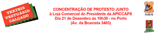 CONCENTRAÇÃO de Dirigentes Sindicais junto à Loja Comercial do Presidente da APICCAPS, Luis Onofre – Dia 21 de Dezembro às 10h30 no Porto